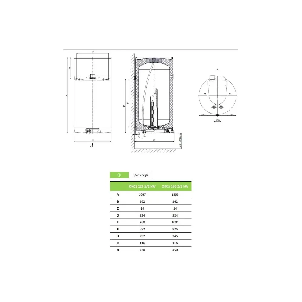 Ohrievač vody OKCE 125 2/2,2 kW