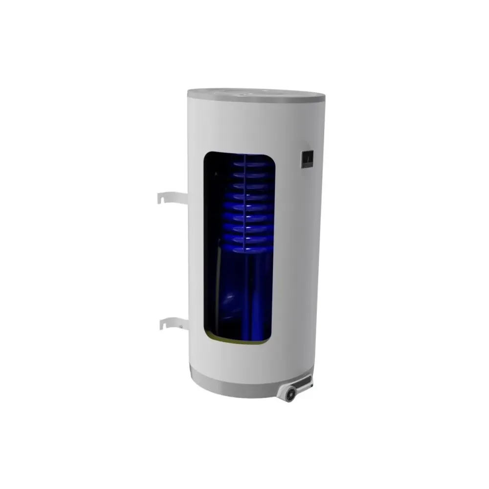Zvislý zásobník teplej vody s jedným výmenníkom vhodným pre rôzne zdroje tepla a s možnosťou pripojenia elektrického vykurovacieho telesa (napr. k fotovoltaickému systému).
