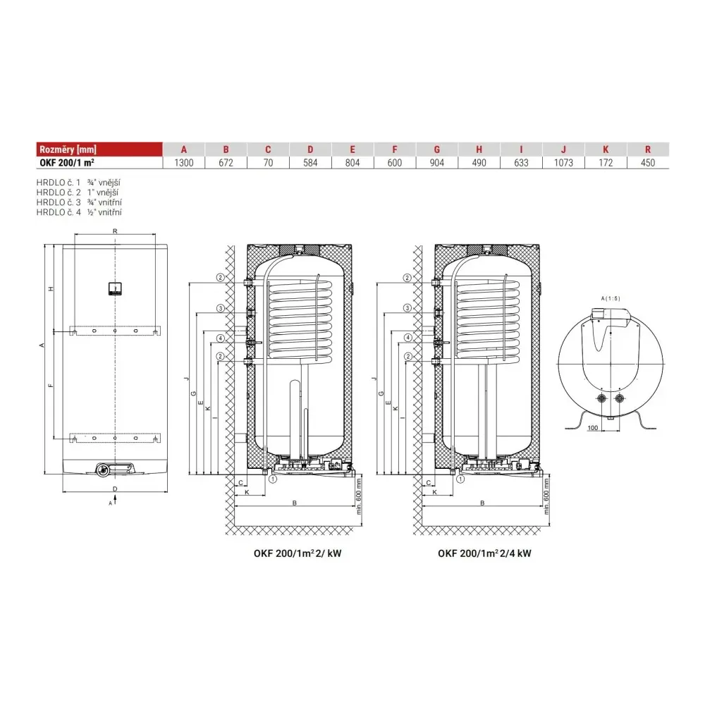 Kombinovaný zásobník OKF 200/1 m2 2/2 kW