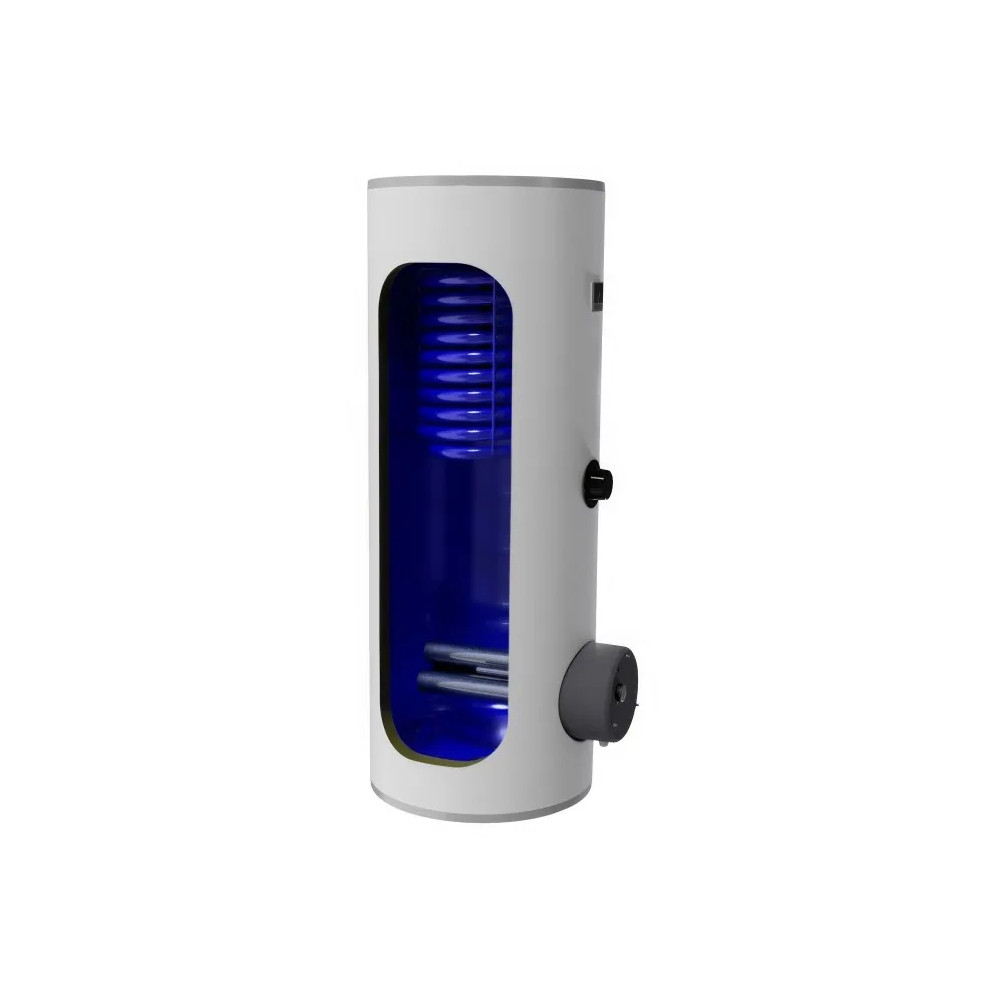Stacionárny zásobník teplej vody s bočnou prírubou a jedným výmenníkom, vhodný pre rôzne zdroje tepla a má možnosť inštalácie vykurovacieho telesa TT (tabuľka použitia telies).
