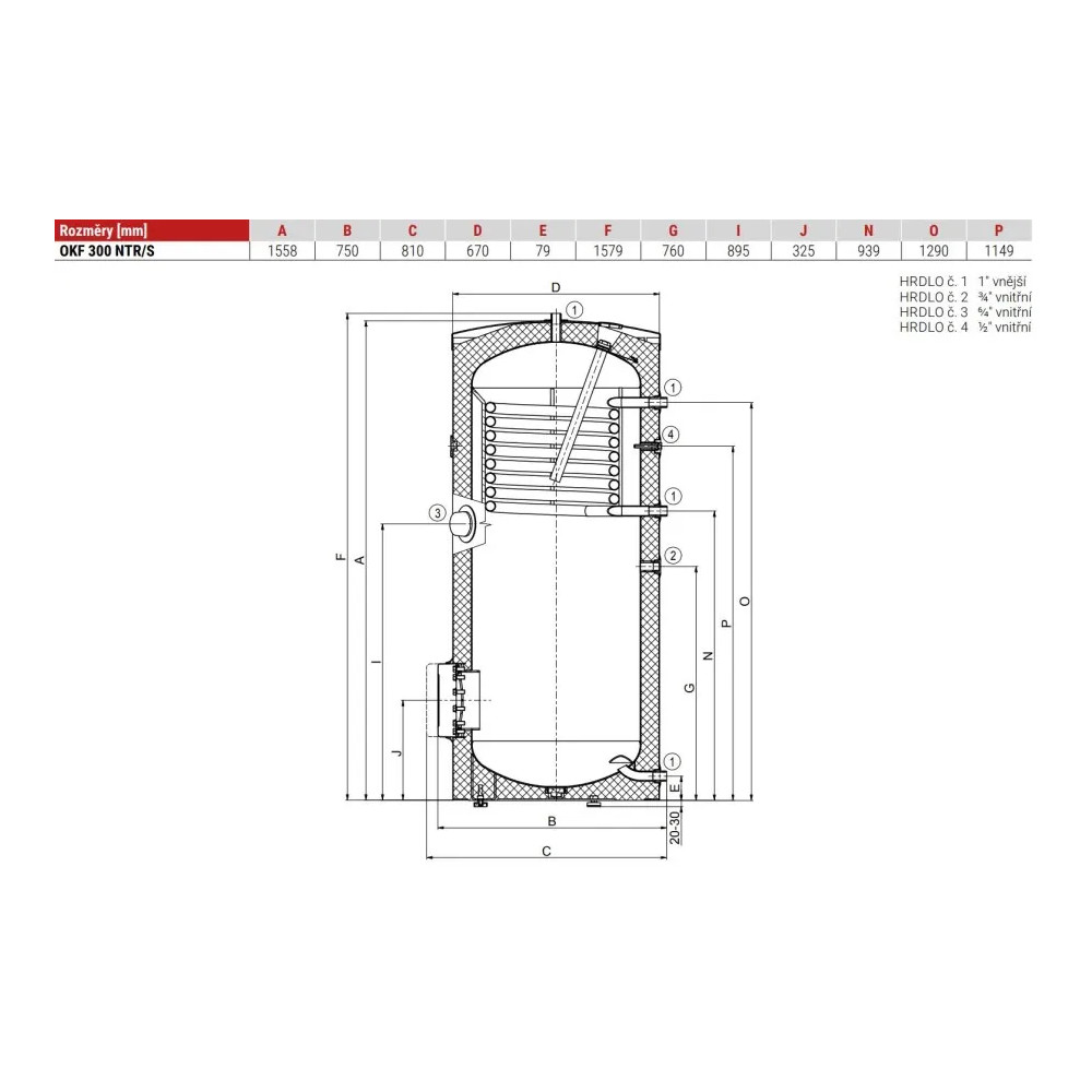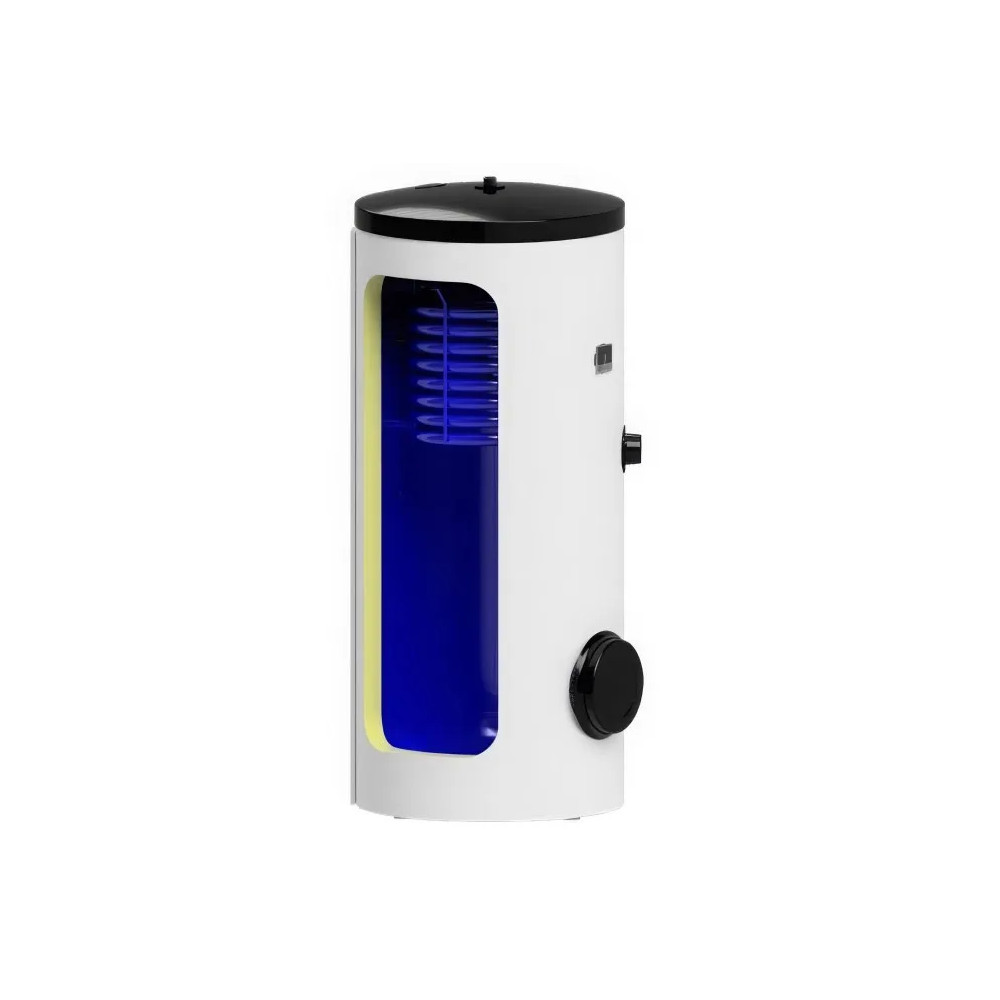 Stacionárny zásobník teplej vody s bočnou prírubou a jedným výmenníkom, vhodný pre rôzne zdroje tepla a má možnosť inštalácie vykurovacieho telesa TT (tabuľka použitia telies).