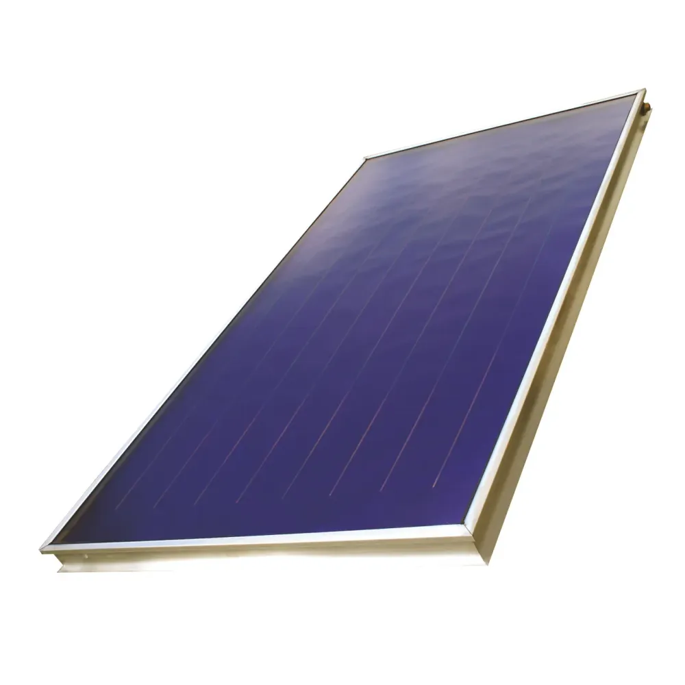 Doskový solárny kolektor prevedenie "U" plášť kolektora z prírodného hliníka, rúrky a absorbér Cu selektívna vrstva.